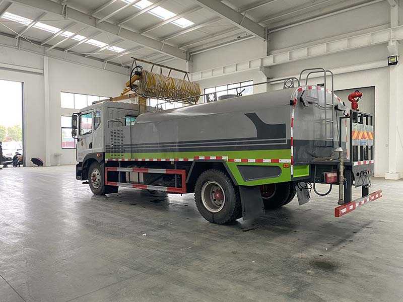 上裝罐體嚴(yán)格按公告尺寸制作,公告容積為:9.77立方米,實(shí)際容積約為12立方,罐體材質(zhì)采用Q235碳鋼材質(zhì)制作,前后封頭約為5mm,防浪板約為3mm,罐體防腐,上裝標(biāo)配為:前沖、后灑、側(cè)防護(hù)、爬梯、后置工作平臺及S型高炮,炮調(diào)劑大雨、小雨、毛毛雨、采用灑水車大功率專用水泵。